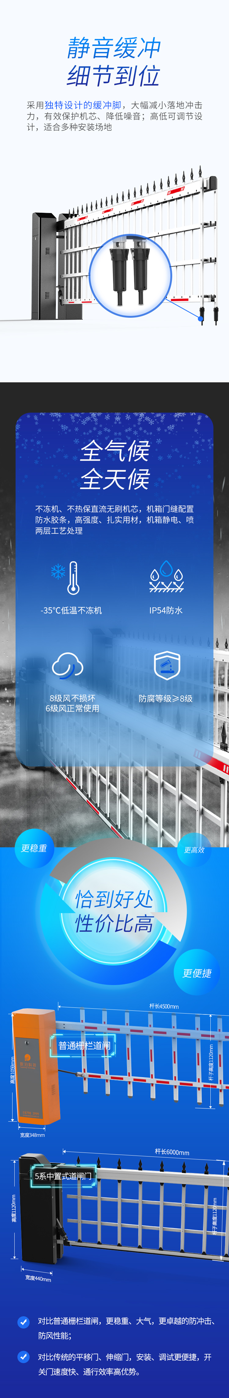 5系中置式道閘門最長6米,對開達12米,可替代12米以內(nèi)的伸縮門、平移門使用
